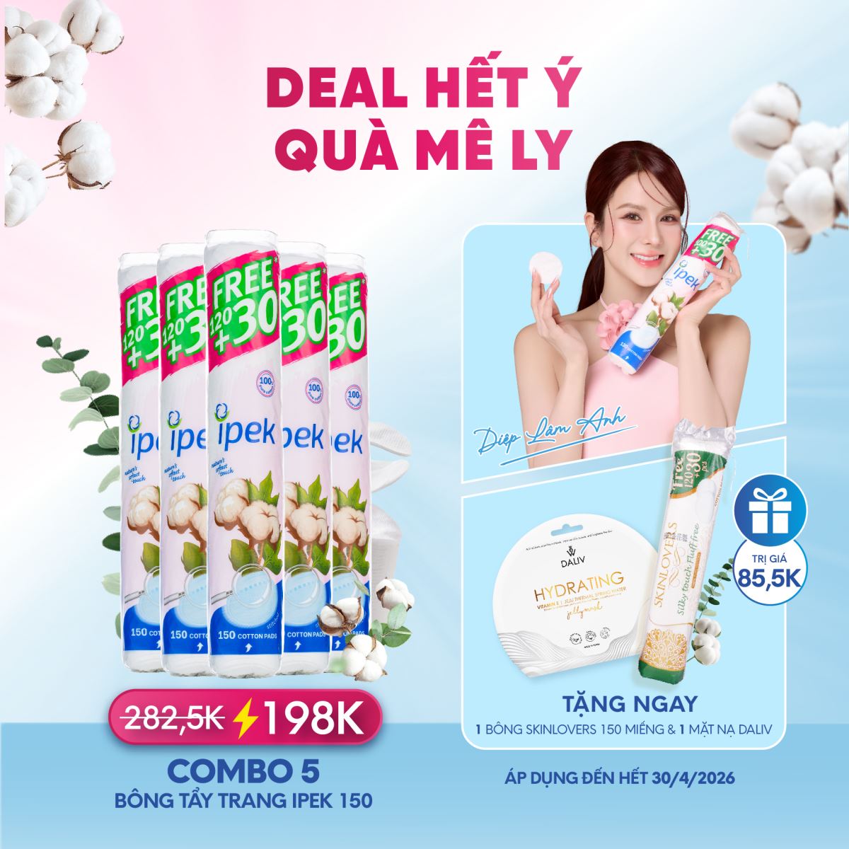 Combo 5 Bông tẩy trang Ipek siêu mềm mịn 150 miếng
