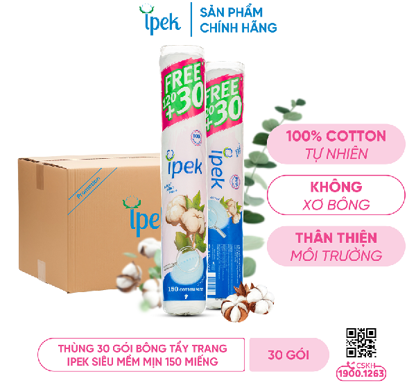 Thùng 30 gói bông tẩy trang Ipek siêu mềm mịn 150 miếng